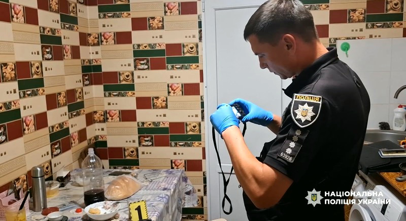 Під час огляду місця злочину були вилучені речові докази, включаючи ніж, для подальших експертиз.