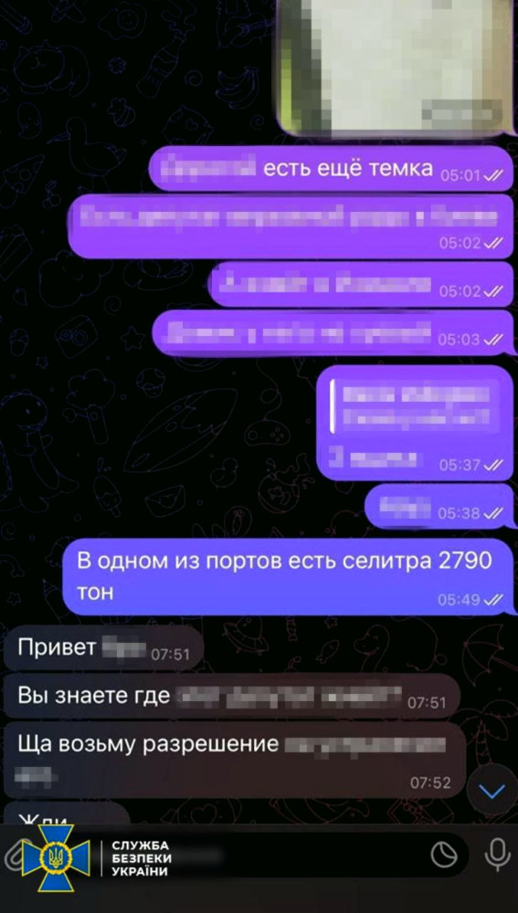 У результаті спеціальної операції було затримано двох осіб, які працювали на фсб і готували атаку на склади селітри в одному з портів регіону.