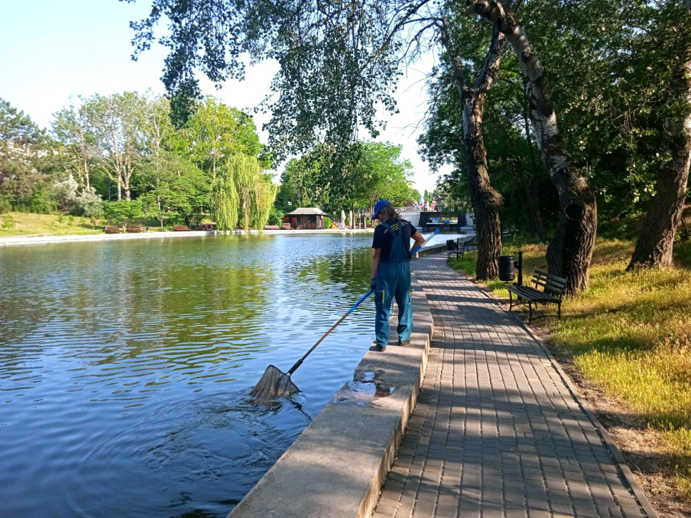 Працівники виконують ряд завдань: прибирають опале листя з води, очищають пішохідні доріжки, косить траву та ремонтують елементи інфраструктури. Все це здійснюється для підтримки порядку на території ставків.