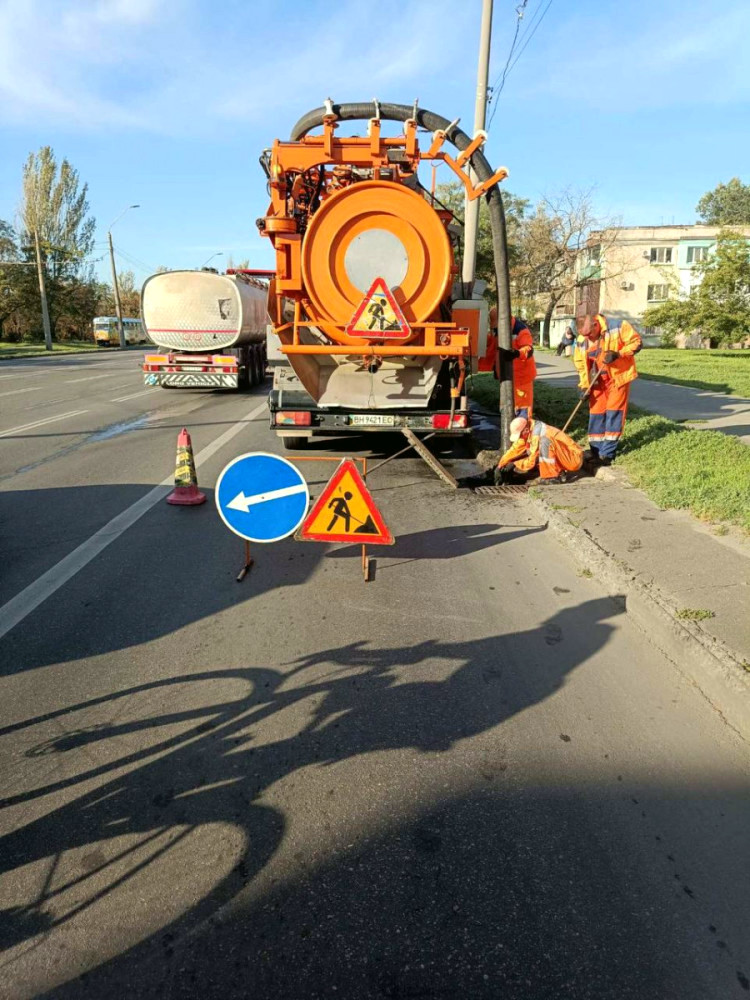 Очищення систем водовідведення в Одесі відбувається за розробленим графіком, а під час інтенсивних дощів бригади КП «Міські дороги» працюють додатково, очищаючи решітки від сміття, що потрапляє в них разом із дощовою водою.