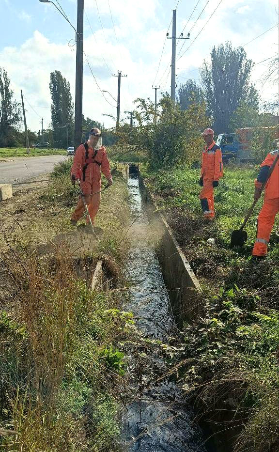 Крім того, виконано косіння трави на лотках і канавках (10 060 п/м) та очищено 1735,6 кв.м буферного ставка.